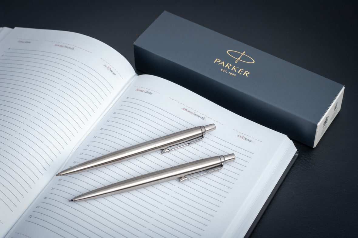 Набор Parker Jotter Core Stainless Steel CT от официального дилера Parker в Кызыле. Вы можете дополнительно заказать гравировку, которая подчеркнет Вашу оригинальность и придаст памятность статусному подарку. Все ручки Паркер поставляются в фирменном футляре.